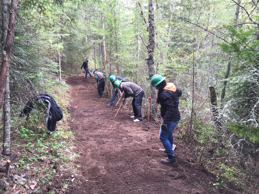 Originally built in the 1970s, the Split Creek Trail had fallen victim to erosion damage and lack of maintenance. Over the summer of 2015, volunteers donated their muscles to a major overhaul of the entire trail, rerouting long portions out of flood-prone areas and working on drainage and brushing throughout.