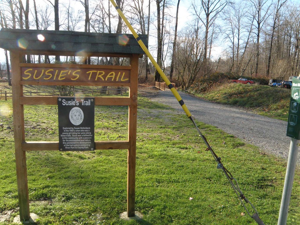 Tucked in a forest of pines and deciduous giants next to the bustle of Highway 2, Susie’s Trail offers a reprieve whether you are stuck in traffic or just need to stretch the legs on a rainy day. The compact gravel path leaves First Street, crosses over a sturdy bridge and loosely follows the upstream flow of the Sultan River.