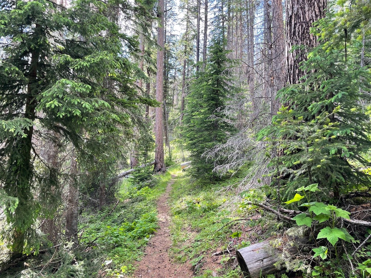 This feeder trail for the Kettle Crest is known by mountain biking enthusiasts but makes for an excellent hiking route as well. The access for the upper section of the trail is 6.5 miles up NF-6113 (Bulldog Cabin Rd) at the 5050-foot level after turning south off of Boulder Creek Road.