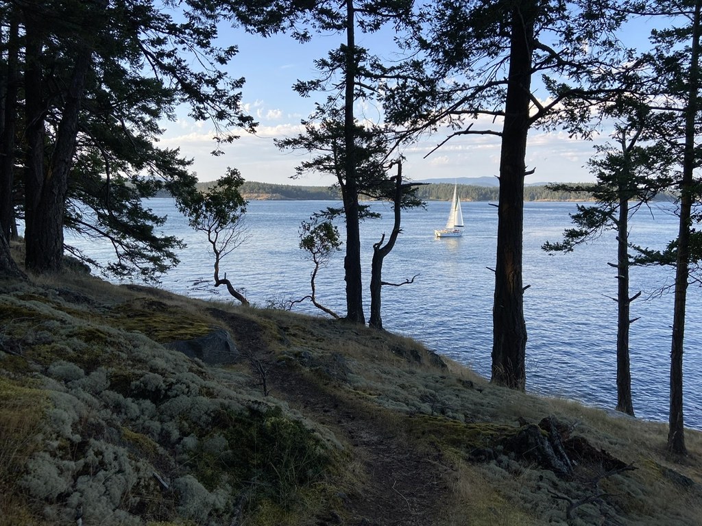 The trail is a mild roller coaster of elevation gain and loss, with plenty of greenery and views of the water. Washington State Parks suggests taking the loop counterclockwise.