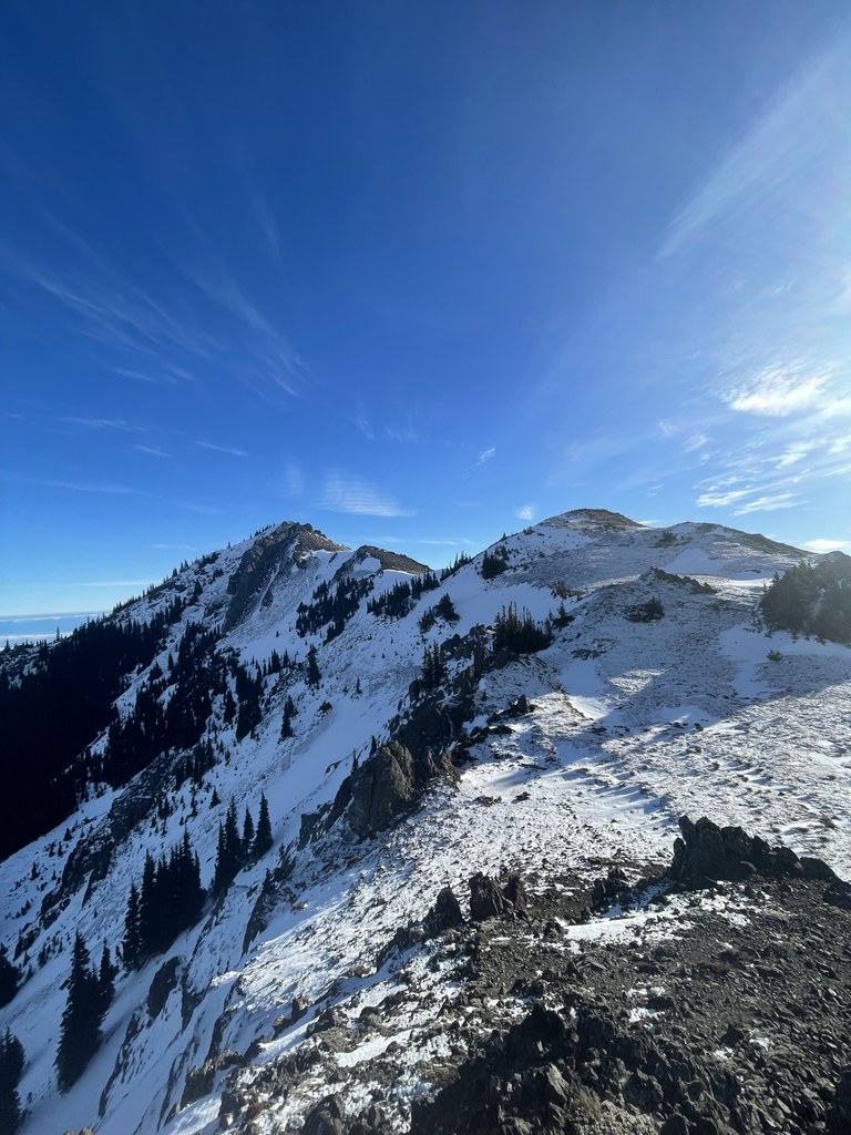 Tyler Peak is located northwest of Mount Townsend. While this area can be windy, and views are obscured by fog, when it's clear, you'll enjoy panoramic views of the surrounding area.