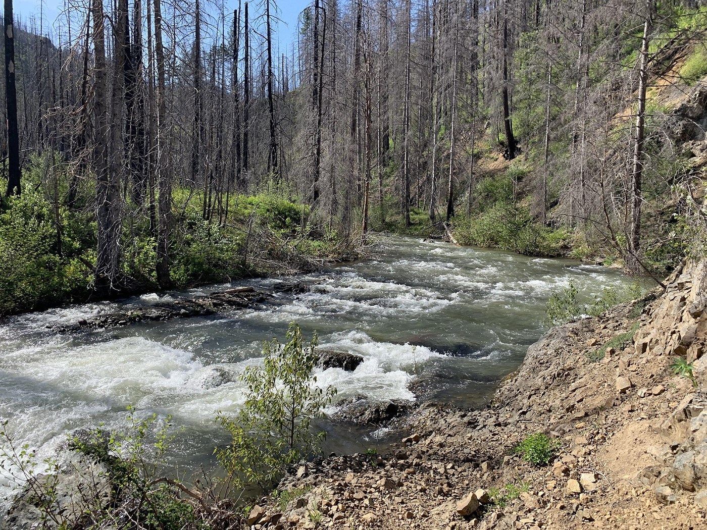 Hiking through a deep canyon with a riparian zone, old-growth, and cliffs, this dramatic trail parallels the river with several crossings. In places, it climbs high above the river to avoid cliffs and other obstructions in the deep, rugged canyon.