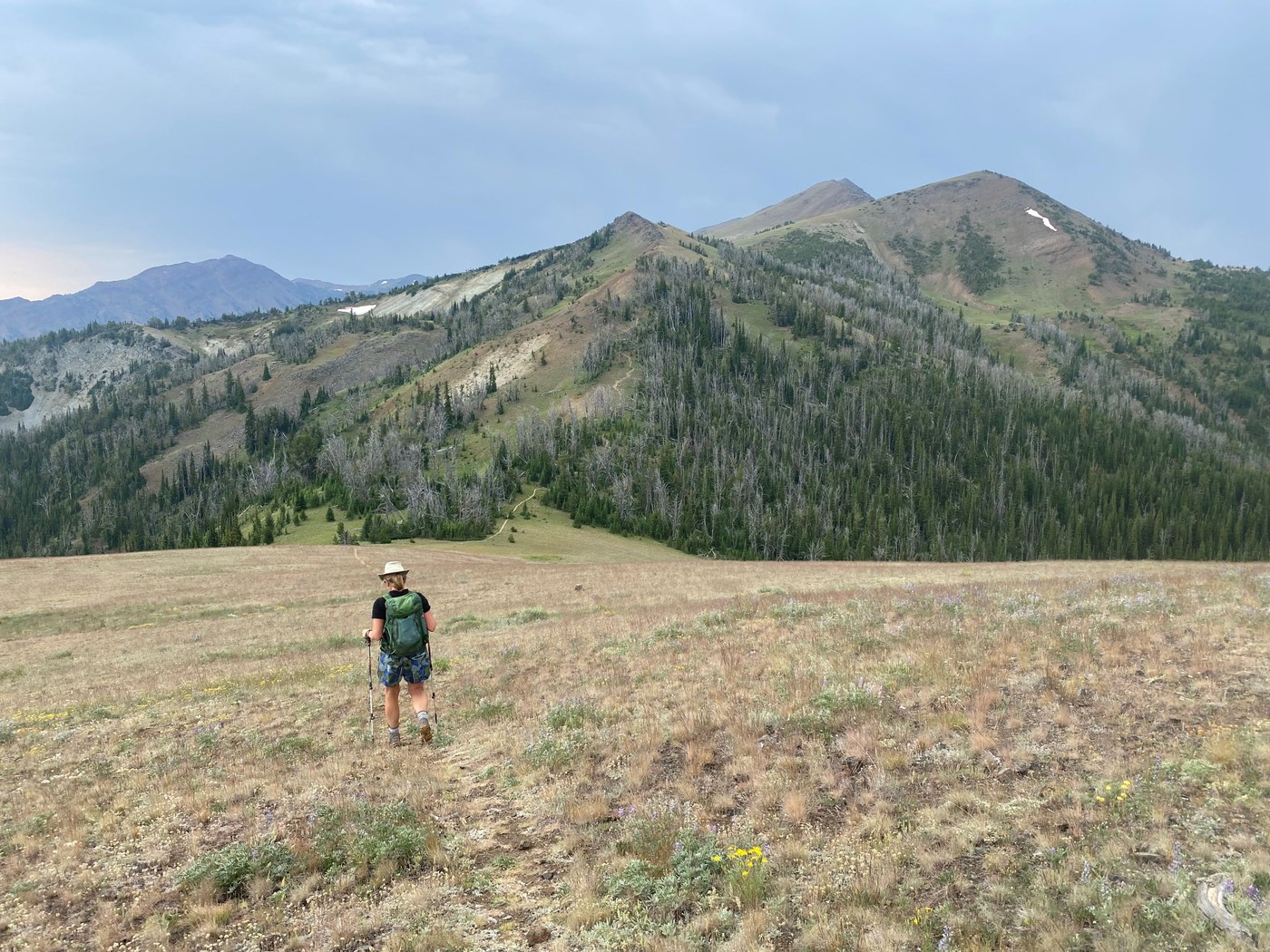 All along this route, you have the sense of being high and in the wilderness. There are numerous flowers as well as areas of recovering forest fire. There are trails (#1745 and #1745B) that appear on maps to create a loop to get back to Warnock Corral. As of August 2024 ,this connection was not feasible. Expect big skies, wildflowers and dry conditions.