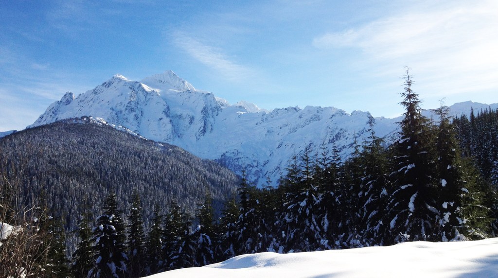 Snowshoe or cross-country ski on this road just below the Mount Baker Ski Area. This route is White Salmon Road, and is not related to Salmon Ridge or White Salmon Creek. Those are separate areas, slightly more advanced, and require a Sno-Park permit at the lot.