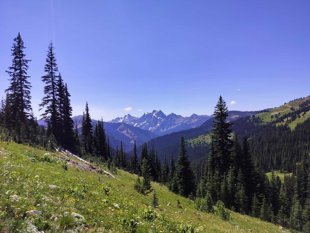 As you hike along the relatively flat trail, you’ll encounter breathtaking views at every turn: Gardner Mountain, the Needles, Silver Star, Golden Horn and nearby Ballard and Azurite are to the south. Look west to Jack and Crater and look east to the Pasayten Wilderness. Time your trip right and you’ll find wildflowers decorating the sides of the trails. If your knees start to flare up, search for a ski yurt tucked into the mountainside about 2.5 miles in and make that your turn around point.
