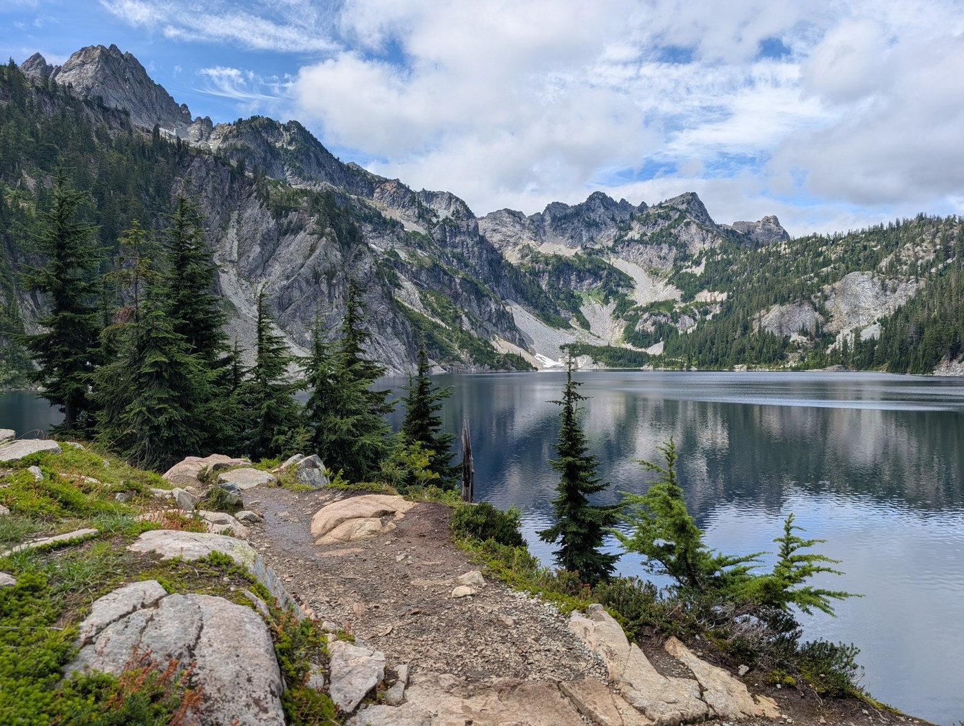 Same as what everyone says, pretty destination, worth it to keep going along the north shore of the lake for a while because the views only get better. wildflowers past peak but the blueberries/huckleberries are at perfection, and hardly anyone was partaking. It seemed to be a banner year for them, which leads to... well, more on that below.