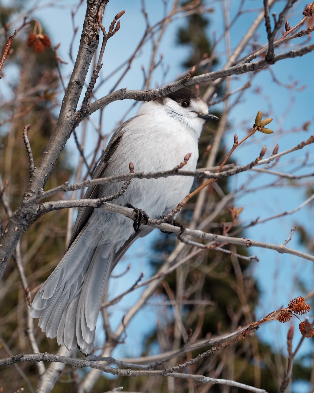 At about 12:15 I arrived at the lake. The views were a nice reward and the whiskey jacks showed up immediately looking for their reward but I did not oblige! The clouds were moving through and the view was different from minute to minute. I saw two other hikers at the lake and saw two more on the way back.
