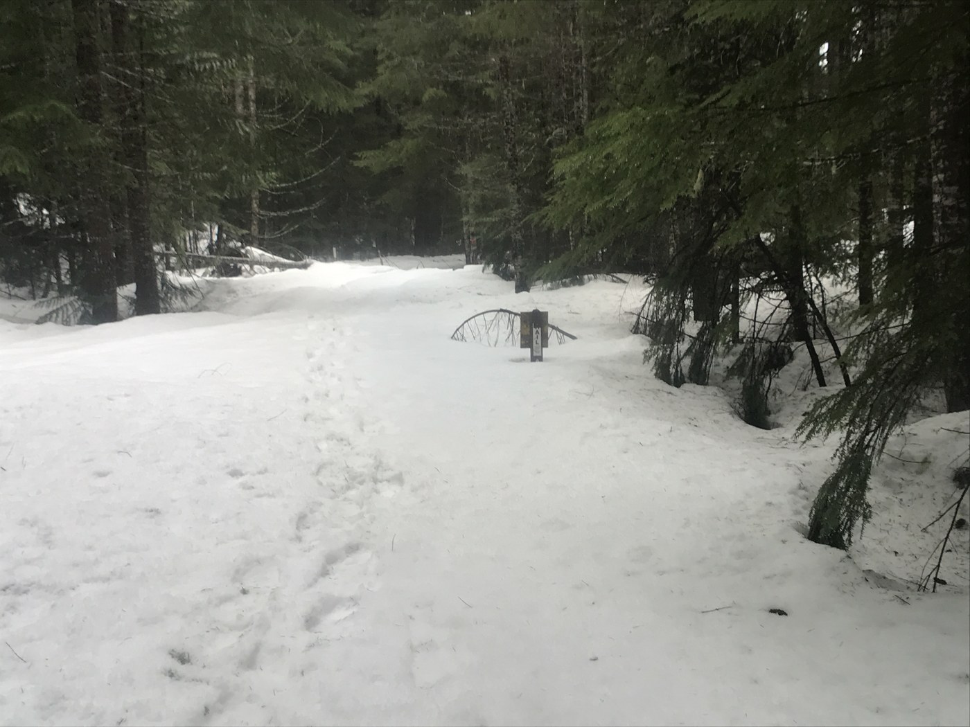 Lower Trail is much more pleasant to hike. Still all snow, and probably more blowdowns than upper, but they are more easily walked around. Like upper, blowdowns of all types. Over, under, and through. Snow kinda ends just below the parking lot and is pleasant until it meets the road where you pick up the snow to the car.