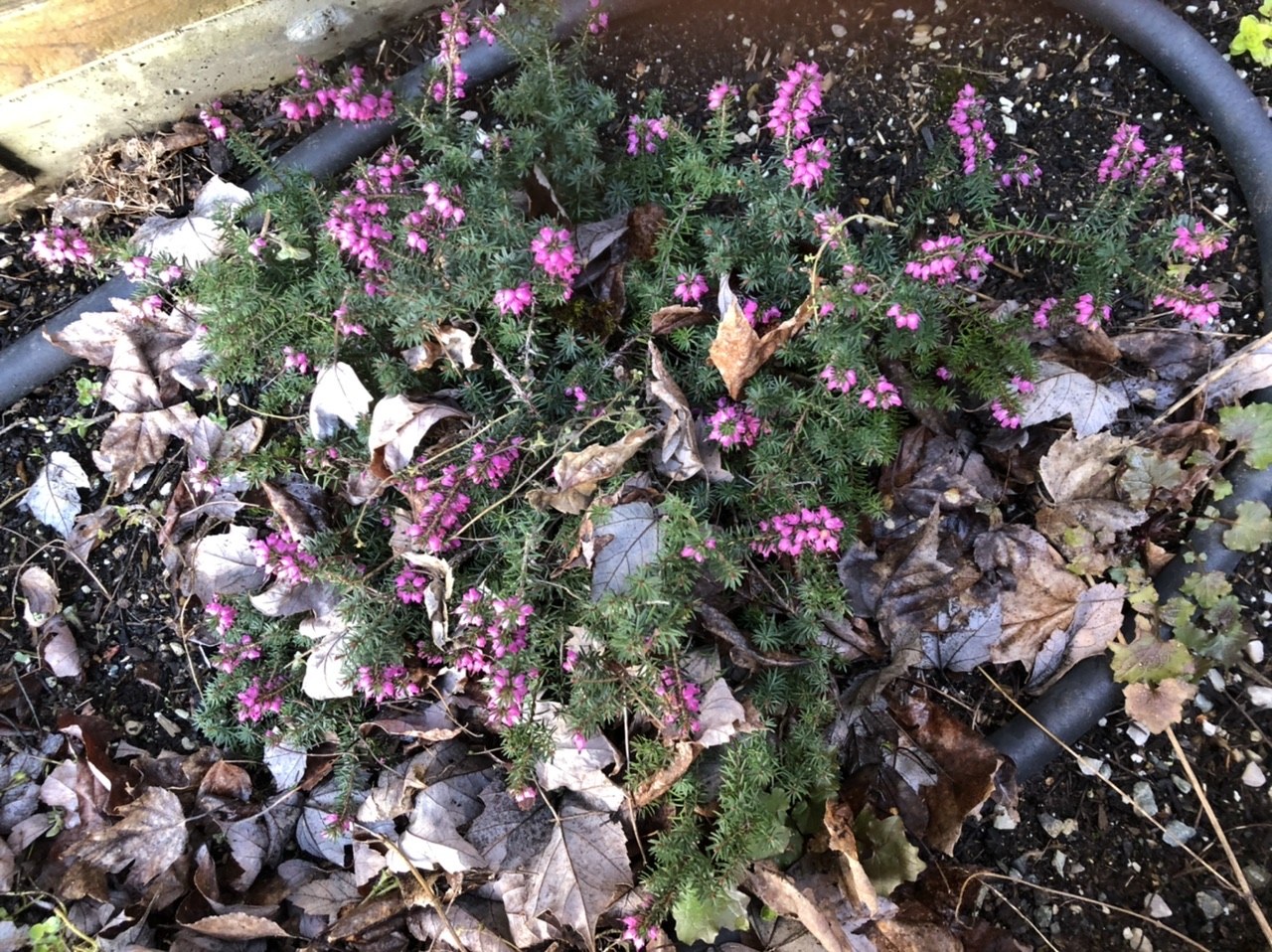 Enjoyed the lavender and rosemary (not blossoming), and the blossoming pink heather and pink bleeding hearts.