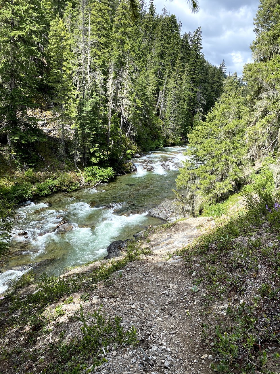 The trail report is a good description, Douglas fur trees for as far as your eye can see. A lot of the wildflowers seemed to have lost their flowers but there were still a lot of trillium's. Weren't a lot of people on the way out. I don't know if we even saw anyone on the way to the lake. Coming back we passed by several people at different times but it wasn't crowded. We came back had a picnic near the river by the parking lot. Good hike to dust the cobwebs off the hiking boots.