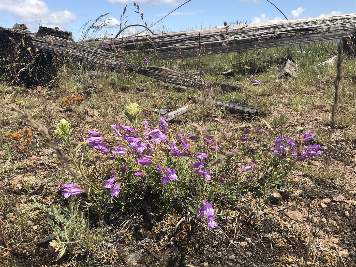 What is remarkable here is the diversity of this trail. There is an accumulative 1800’ of elevation gain as you roll through the Okanogan Highlands. Lodge Pole pine forest one moment, then a mature, park-like fir/ponderosa forest the next, and lastly sub-alpine rocky hillsides smothered in flowers. An old sheep herder’s cabin was fun to visit as was the now-gone fire lookout summit.