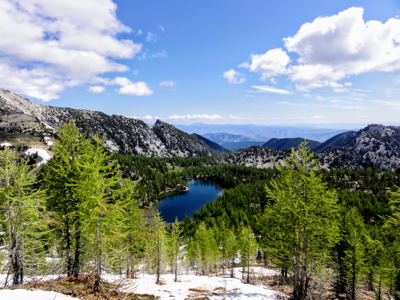 Cooney Lake area mostly snow-free, more patches around the horse camp; found the outhouse in pristine conditions, we might have been the first users this season. Only one other party the first night, but then mobbed the following two nights. A large number of horses arrived, and were let loose, with cowbells, during the night; they walked freely back and forth thru various campsites. It was rather spooky, was thinking the place is haunted by some cow ghosts :) Very cold nights, it got down to freezing.