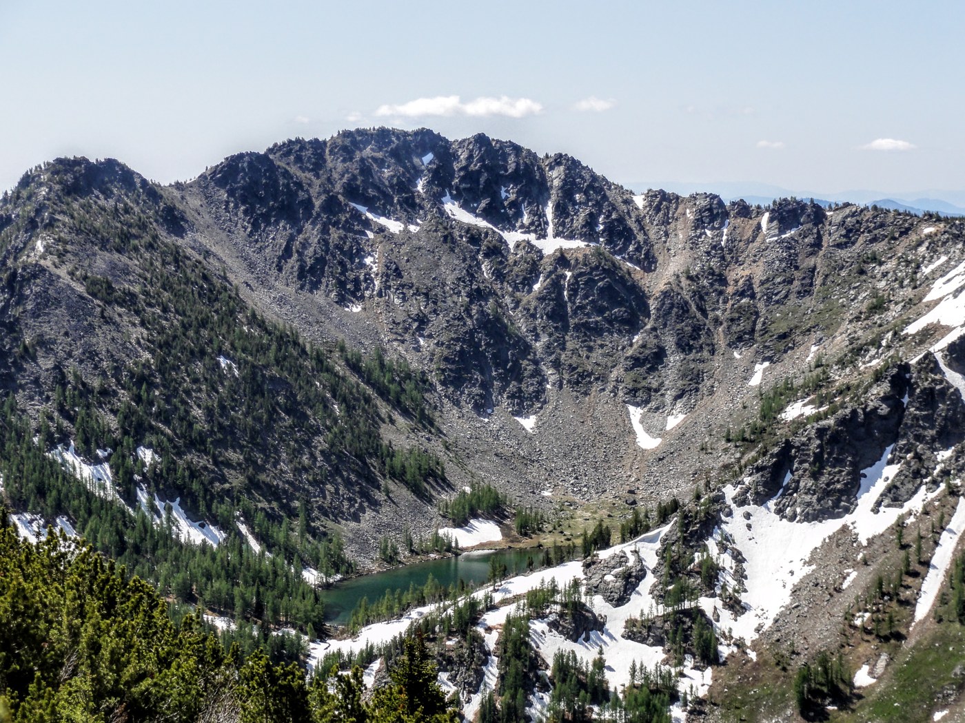 Day-tripped to Merchants Basin and Sunrise Lake; the valley is lovely, lots of flowers. Just a few patches of soft snow to get up to the Sawtooth Crest.