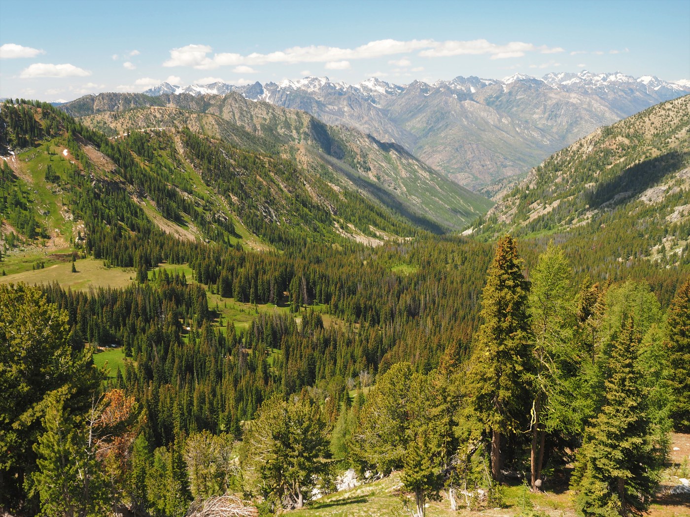 Next day, it was onto Angel's Staircase and Upper Eagle Lake thru beautiful terrain: meadows with grass and flowers and the North Cascades staring at us. A few parties at Upper Eagle but plenty of space; bugs were a bit of an annoyance until we got a fire going. Upper Eagle is very impressive, we liked it even more than Cooney. The braver ones in our party took a quick dip. Decent-sized trout were spotted but unfortunately were totally uninterested in our spinner.