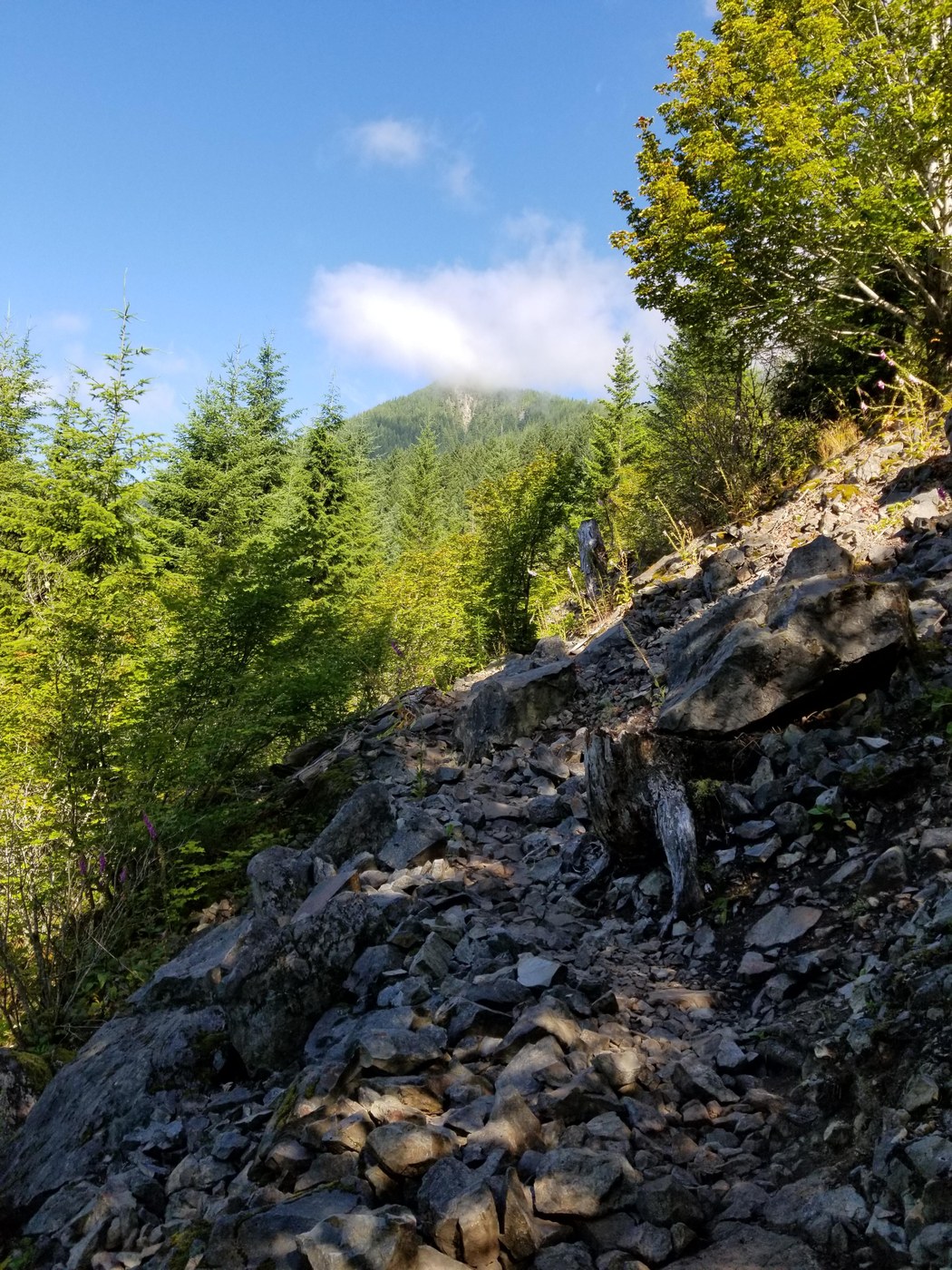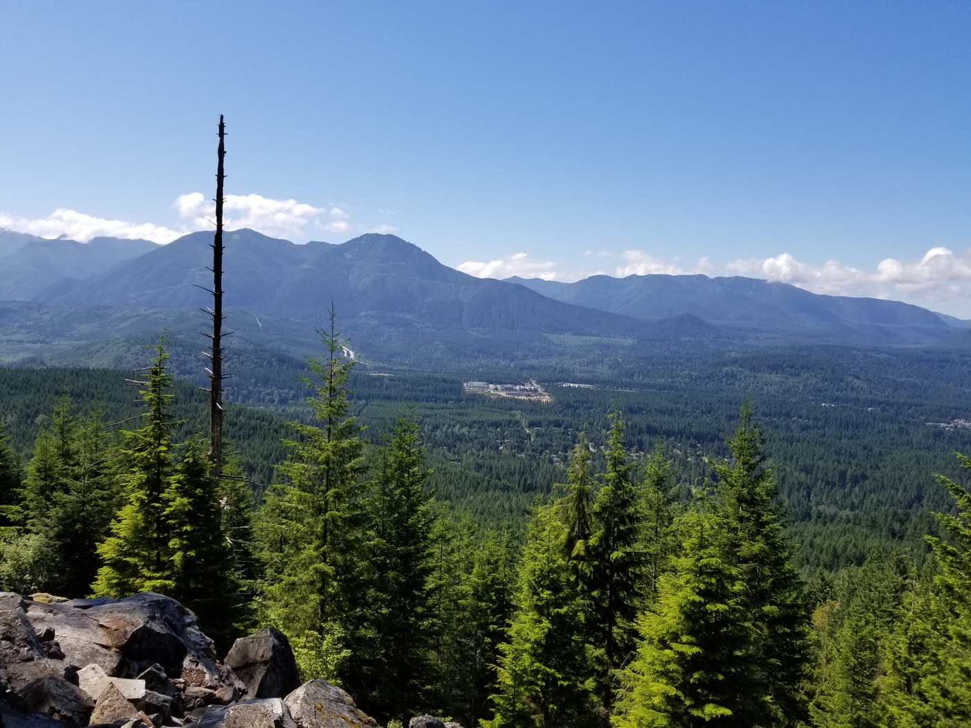 Mt. Teneriffe Falls trail is challenging, but not as hard as Mt. Si and much more rewarding in my opinion. There are beautiful views at several points throughout the hike and the waterfall at the end is well worth the climb. We encountered several groups, but the trail was nowhere near as busy as Mt. Si at this time of year. Also, we feel like we avoided some crowds by parking where we did instead of in the Mt. Teneriffe parking lot.