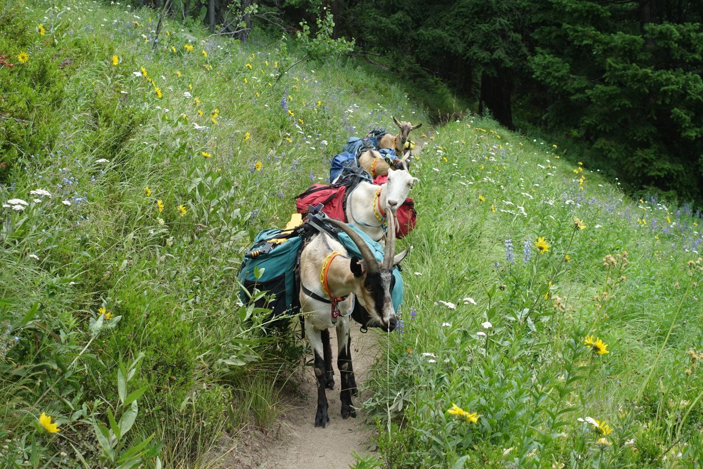 I took 4 of my Packgoats: Grant, Albert, Bryce and Benson on a 6 day pack trip in the Chelan Sawtooth area. Since this area is east of Lake Chelan the snow tends to melt our a little earlier than along the main Cascade crest. There were still a few snow patches in higher areas, but the trails were all snow free.