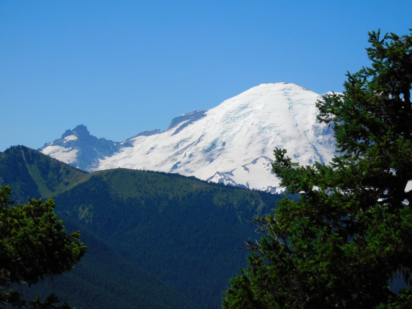 Shared the trail with dirt bike riders. Plenty of solitude for a Saturday hike. The trail was clean and clear, some mosquitos. We had an excellent view of Rainier for lunch