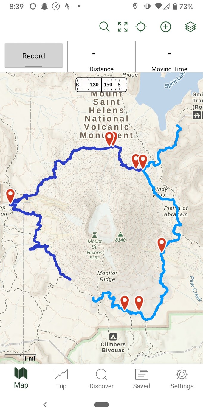 Water access is continuing to dry up for the year. A few of the sources from the report a few days ago are gone. There are a few streams on the north side of the mountain, but other than that the only ones are the Toutle (west side), Chocolate Falls (south side) and a creek near the June Lake trail (south side), and a river around the 4 o'clock position. I recorded waypoints for all the water sources, which I'll attach.