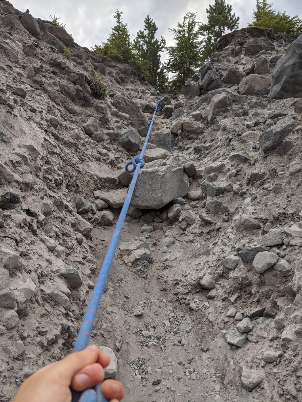 The ropes in place heading down the canyon to the Toutle might be useful but things are pretty straightforward. After crossing the Toutle, I started passing more people- lots of trail runners (I think there was a 50k that was scheduled for today and then cancelled) and some backpackers. It seems most folks started on the south side (June Lake, Marble Mountain, or Climbers' Bivy) and went clockwise.