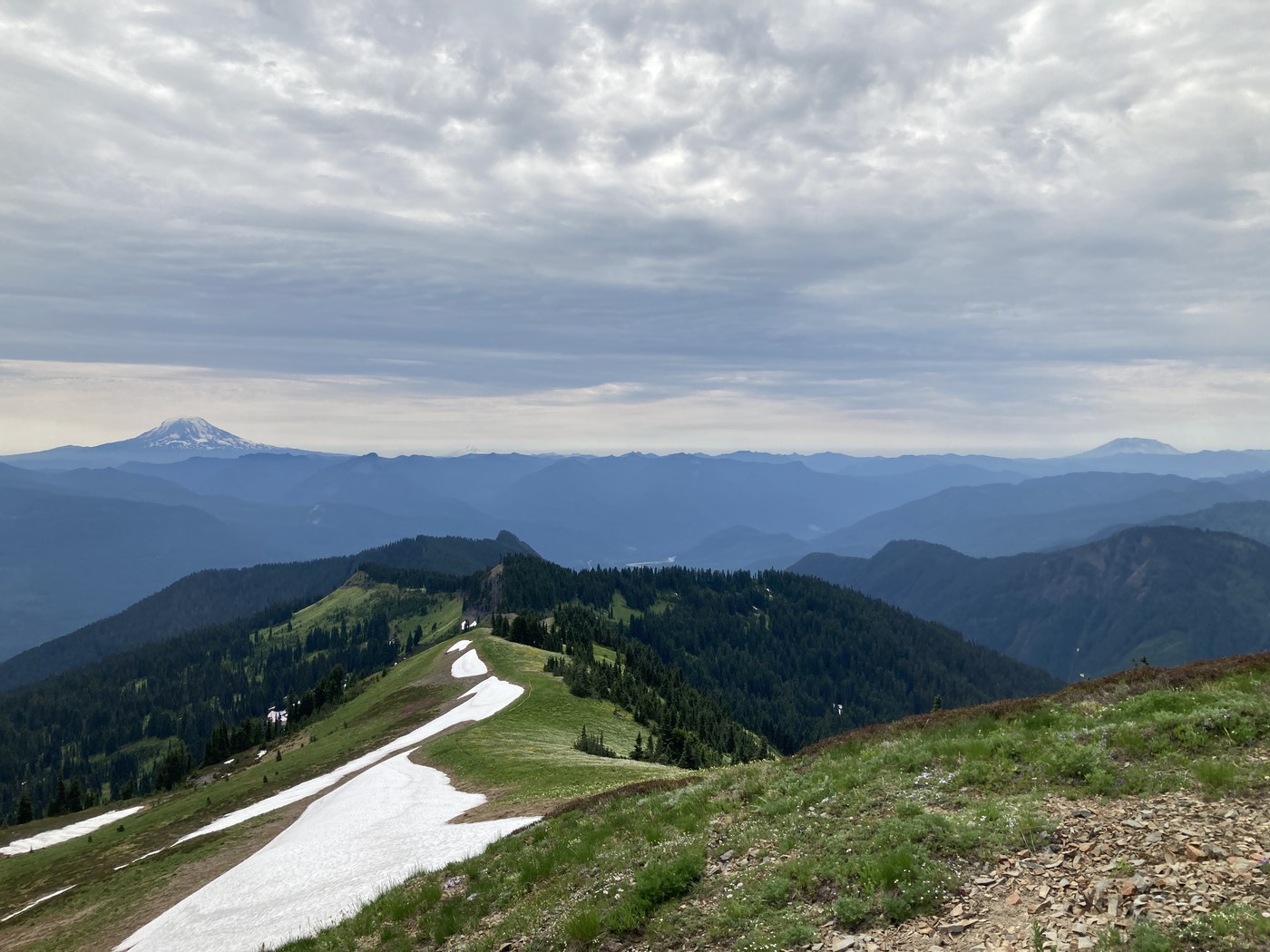 Shouldn't be running into hunters yet - the only thing that is open right now is coyote which is year round but I don't see the Tatoosh high country as coyote territory. Bear is open but only in eastern WA. Strange that you say you ran into multiple hunters.....