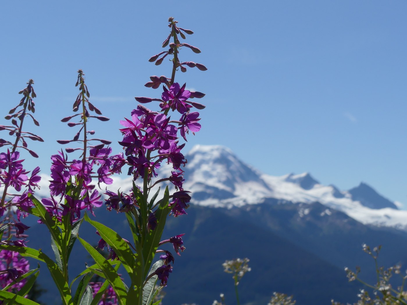 The switchbacks eventually take you to the first meadow. From here the views open up and there is great views of Baker. The wildflowers are still going strong and gorgeous. There is one creek in the first meadow that is a reliable water source but dry from there to the summit.