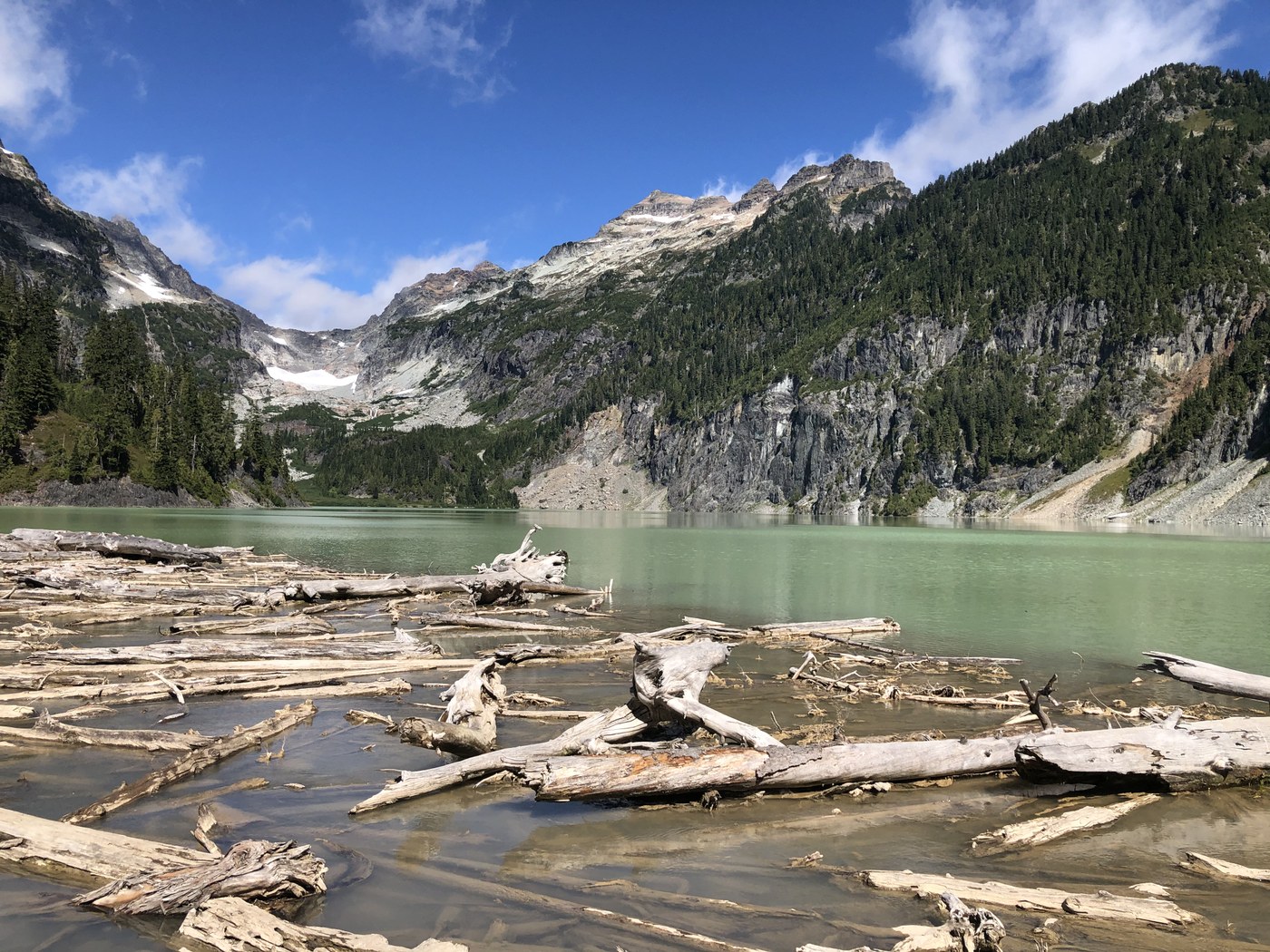 The trail has lots of roots and rocks but is easy to follow. For some reason I had the perception when you reach Virgin Lake and the saddle Blanca Lake is right there. Wrong, you have to hike down to the lake on a steep trail. I didn't think it was bad but in wet, icy, or snowy conditions you would have to use care.