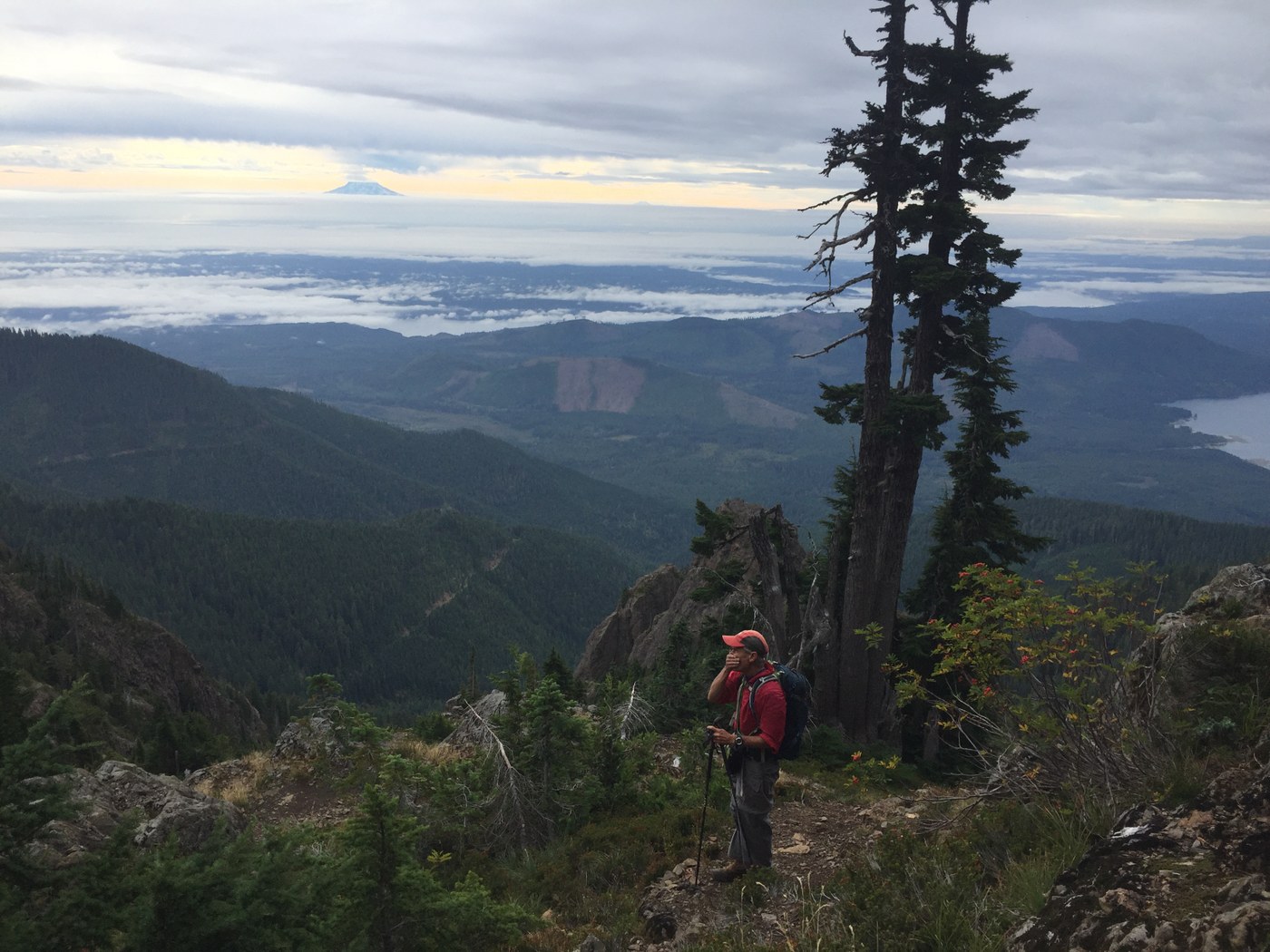 My hiking buddy, Greg, and I paid a Monday morning visit to Mount Washington in the Olympics. Ours were the only two vehicles at the trailhead at 7:45 am. Our intent was to follow the Standard South Route as described in climber's guides. As we hiked up the unmaintained but very well-worn trail, we were pleased to find huckleberries in many spots along the way to the first meadow.