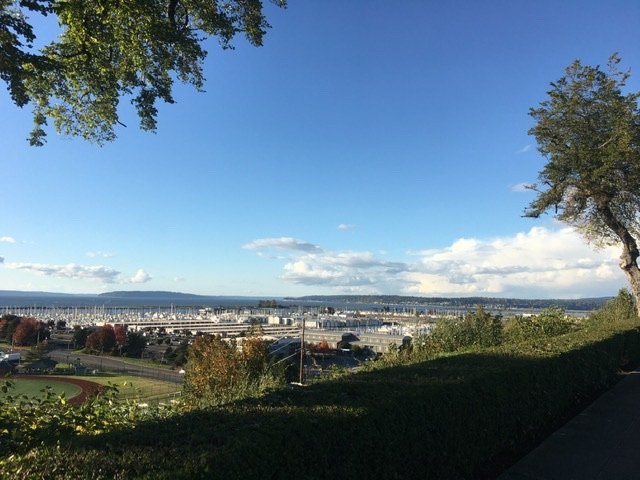 This was our third time taking the overpass from Grand Park and used it to get some gain in (ran the stairs). We were not alone but most of the path is wide and easy to socially distance when folks are aware. The fall colors were out on the marina side and blue skies over Port Gardner and Jetty Island. There were walkers and runners, alike.