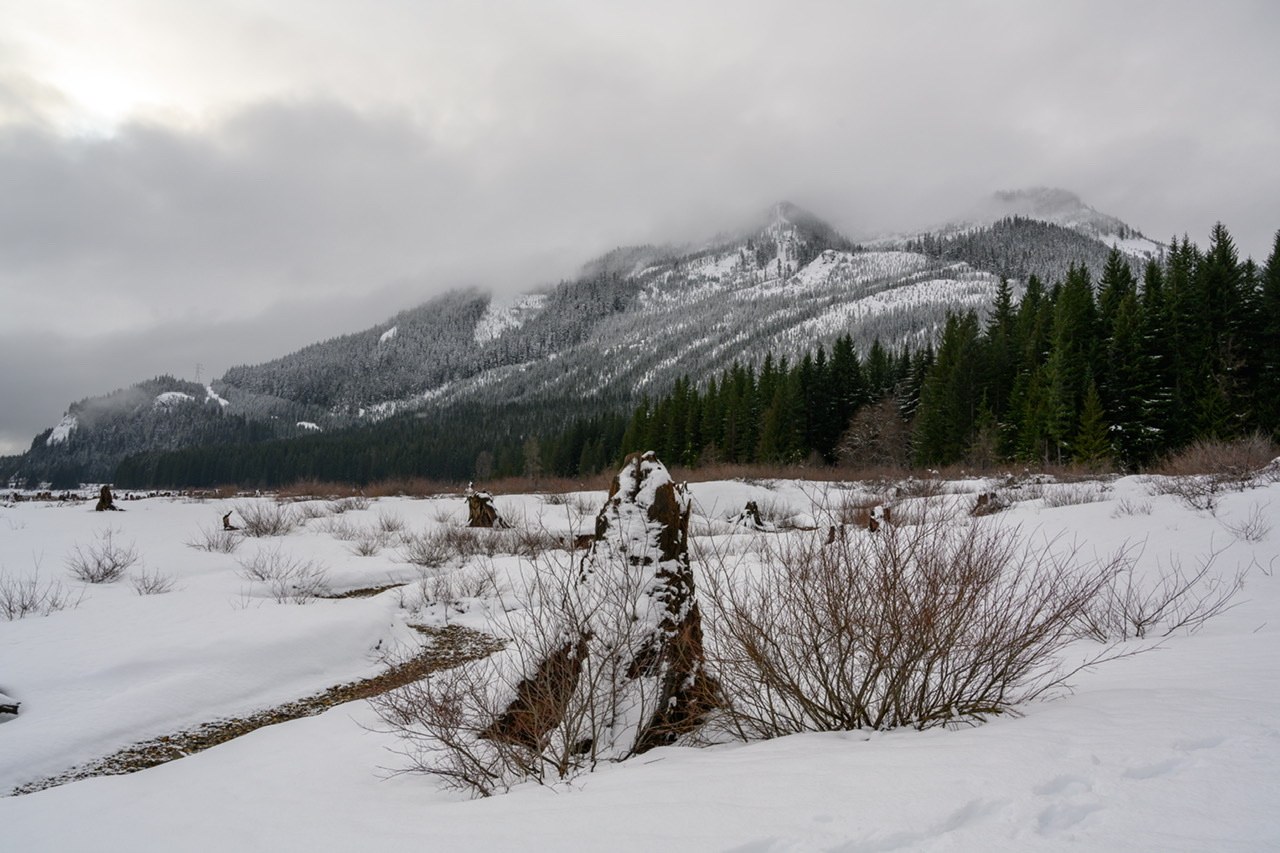 Went out for an easy snowshoe today. We arrived a little before 9am to the Hyak Sno-Park parking lot. There were staff checking for parking passing and selling them to those that didn’t have them. We were told that the sledding hill at Hyak is not yet open, and that the trail has not been groomed.