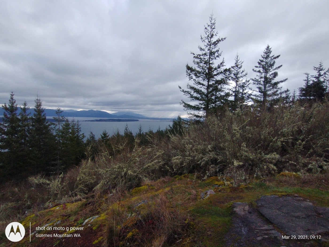 29Mar2021 ~08:30, i was the only one at the Guemes Mountain trailhead parking. The Trail is in good condition. Trailhead-Summit R/T ~2.6 miles. Lots of birds singing during my way up to the summit. Upon reaching the Vista, rewarded myself with a hot cuppa of coffee while enjoying the lovely views .. and the sweet solitude.