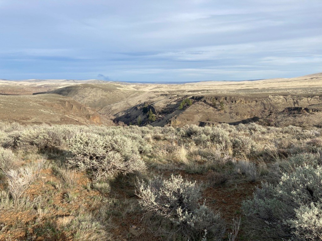 Our campsite really was incredible, with amazing views of the canyons to the east and the Cascades to the west. While some of the sagebrush was taller than me, there are no trees to speak of outside of the canyon (but the canyon has huge hawthorn, aspen near seasonal seeps, and even a few Douglas fir), so I tied my Ursack to a fencepost a few hundred feet from camp (we did see fresh bear tracks in mud a couple of miles before we camped!).