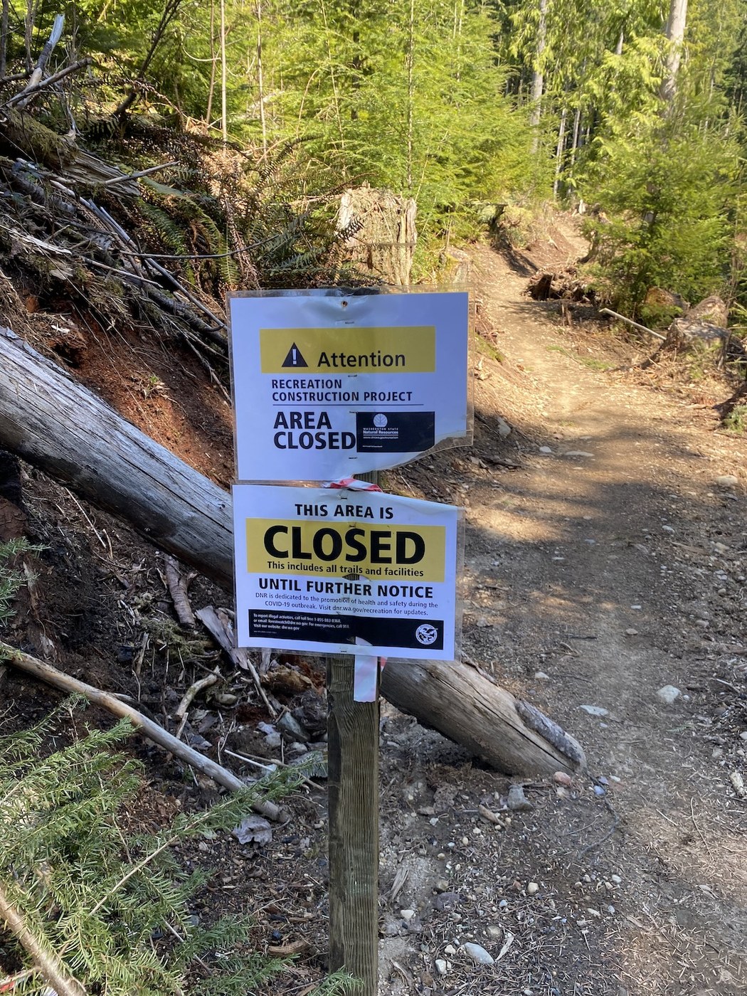 I started from the South Tiger Mountain trailhead and went northbound on the TMT. When you get to Zieg's Zag (see picture #! - sign on tree), the original TMT goes across a tiny stream and heads uphill to the left. There is a new trail that heads to your right. It bypasses a lot of the logging (which I only figured out on the return!) and goes around the east side of the knoll where the trail used to go around the west side. The new trail is beautiful, but it ends with a closure sign before you can get to the junction of the TMT with Middle Tiger. I tried bushwacking through the logging debris - it was nasty work and I gave up and turned around.