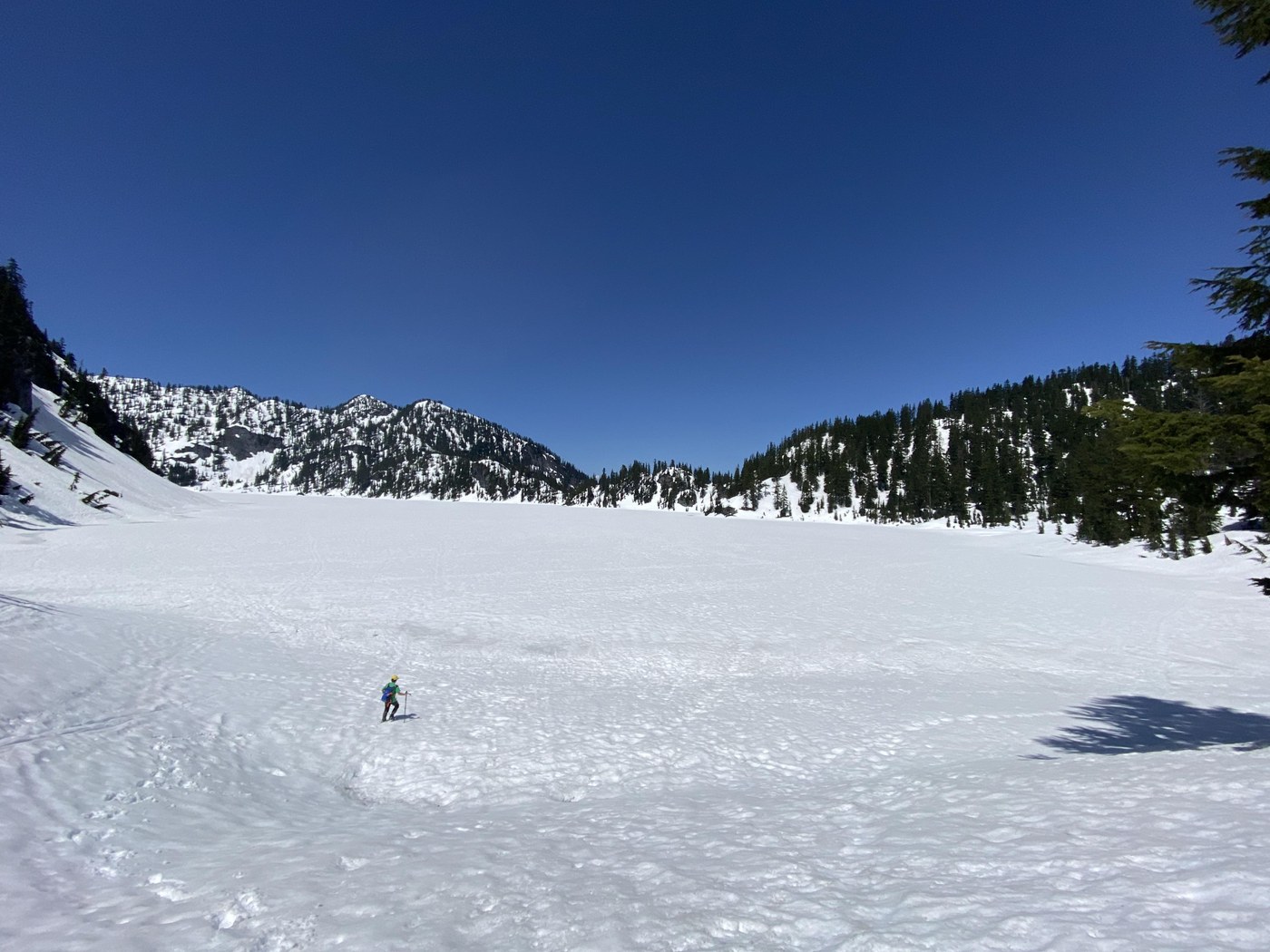 We got lost 2 times in the forest just about a mile from trailhead. We were about to turn around when we saw two other hikers heading to Snow Lake. We followed them to the junction. We then took the winter route, and they followed us. We got a clear view of Source Lake up in the mountain on the winter route. However, when we looked behind, the 2 people behind me disappeared, probably gave up with so much snow.