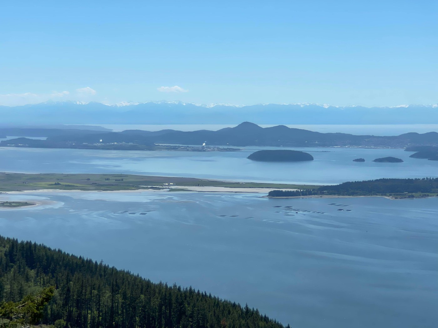 - Spoiler alert: the view from the parking lot at Samish Overlook is pretty much the same as the view from the top of the Oyster Dome hike (albeit not quite as expansive), but it is a nice view of the water, Olympics, and other points west.