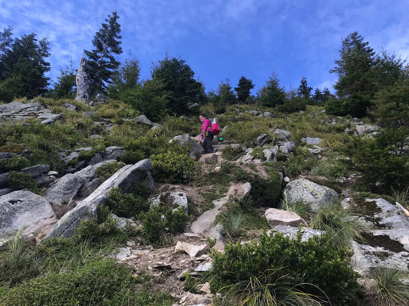 Now the descent. Be careful, this is one of the more difficult "Hiking" descents I've done in 40 years of hiking. Some rocks are not stable, and some have thin layers of dirt making them slippery. It's certainly doable, but requires patience and attention.