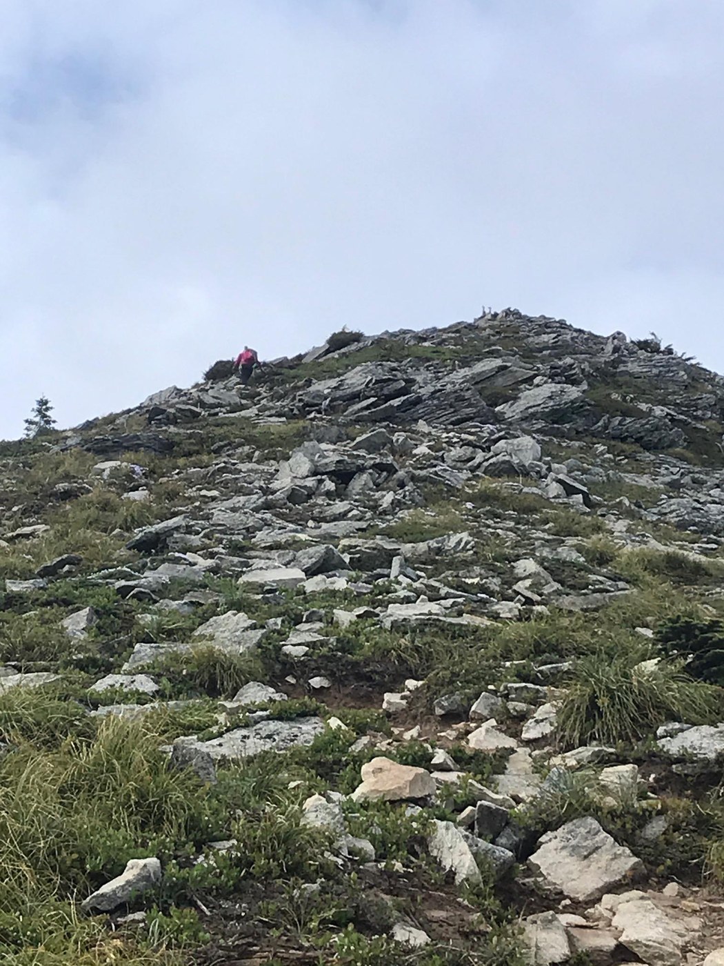 This is a shorter hike than we are used to, but the difficulty made up for it. This baby is steep! The easy start turns into a steady climb through switchbacks, crosses a small boulder field, then gets serious. The last mile plus is UP. The trail becomes more of a four appendage scramble through loose dirt and medium to large rocks, not all of them stable. You will eventually round a corner thinking you must be getting close, I'm calling it heartbreak corner. It reveals the lengthy and steep boulder strewn ridgeline you have left. It's a thigh burner and a Class III scramble awaits at the top. Don't forget to sign the register on top tucked in the rocks.