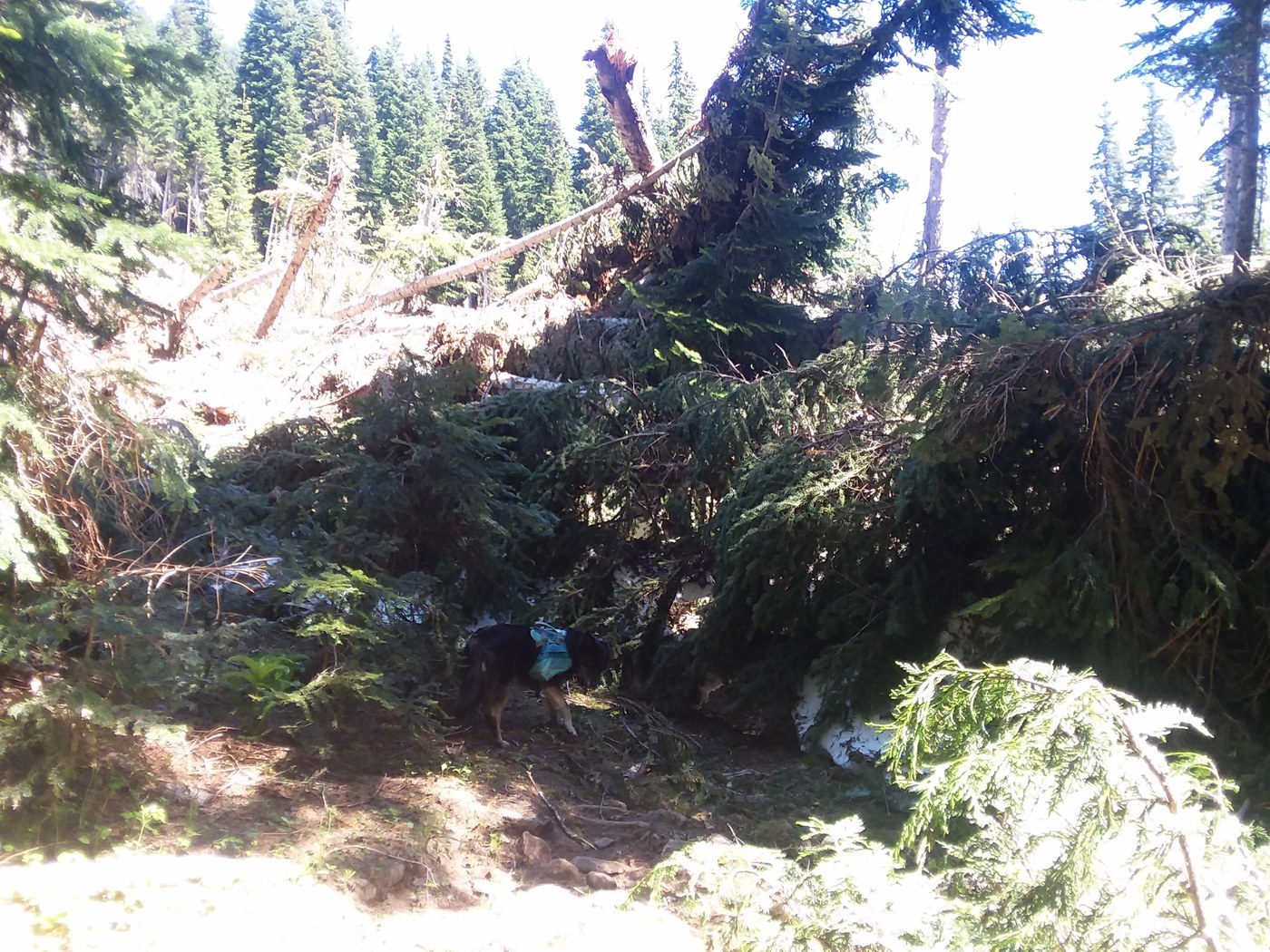 Fish Lake Way: Many blowdown. Between Rock Creek and Fish Lake a large (D4) avalanche obliterated a 100 yard wide section of trail and ran about 300 yards into mature trees. Took us about half an hour to work through it.