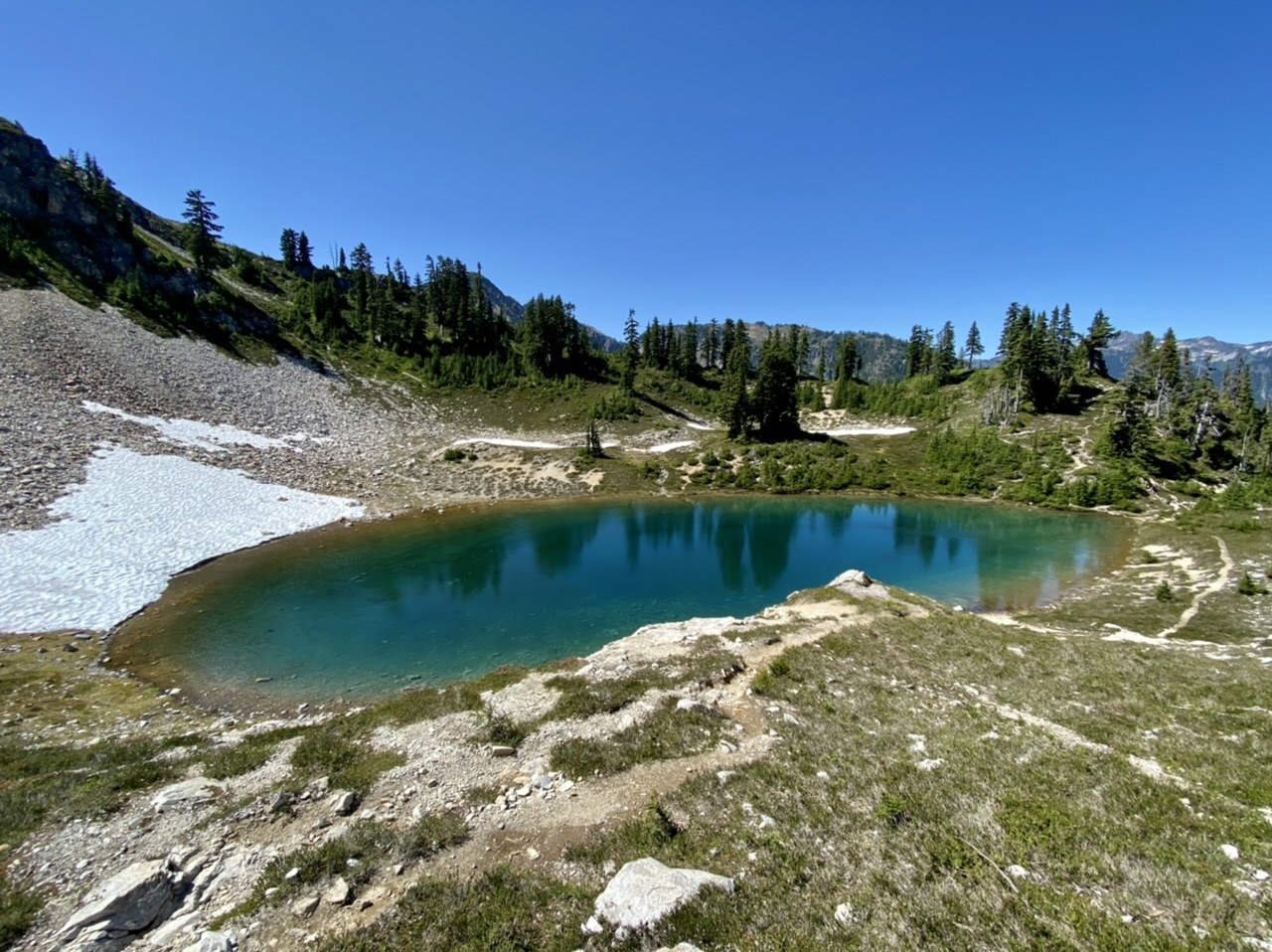 -Snow. No snow on the trails we were on. There is a snow patch just before Egg Lake, but it’s not covering the trail.
