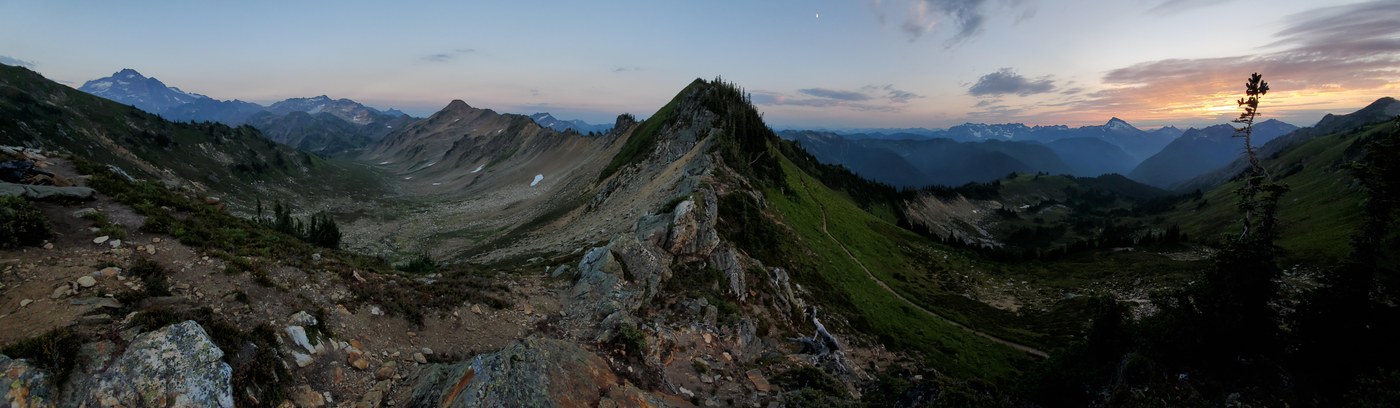 These were taken from Red Pass, about 1.5mi west of the end of the North Fork Sauk River trail on the PCT. A little over 10mi and 5000' to get there.