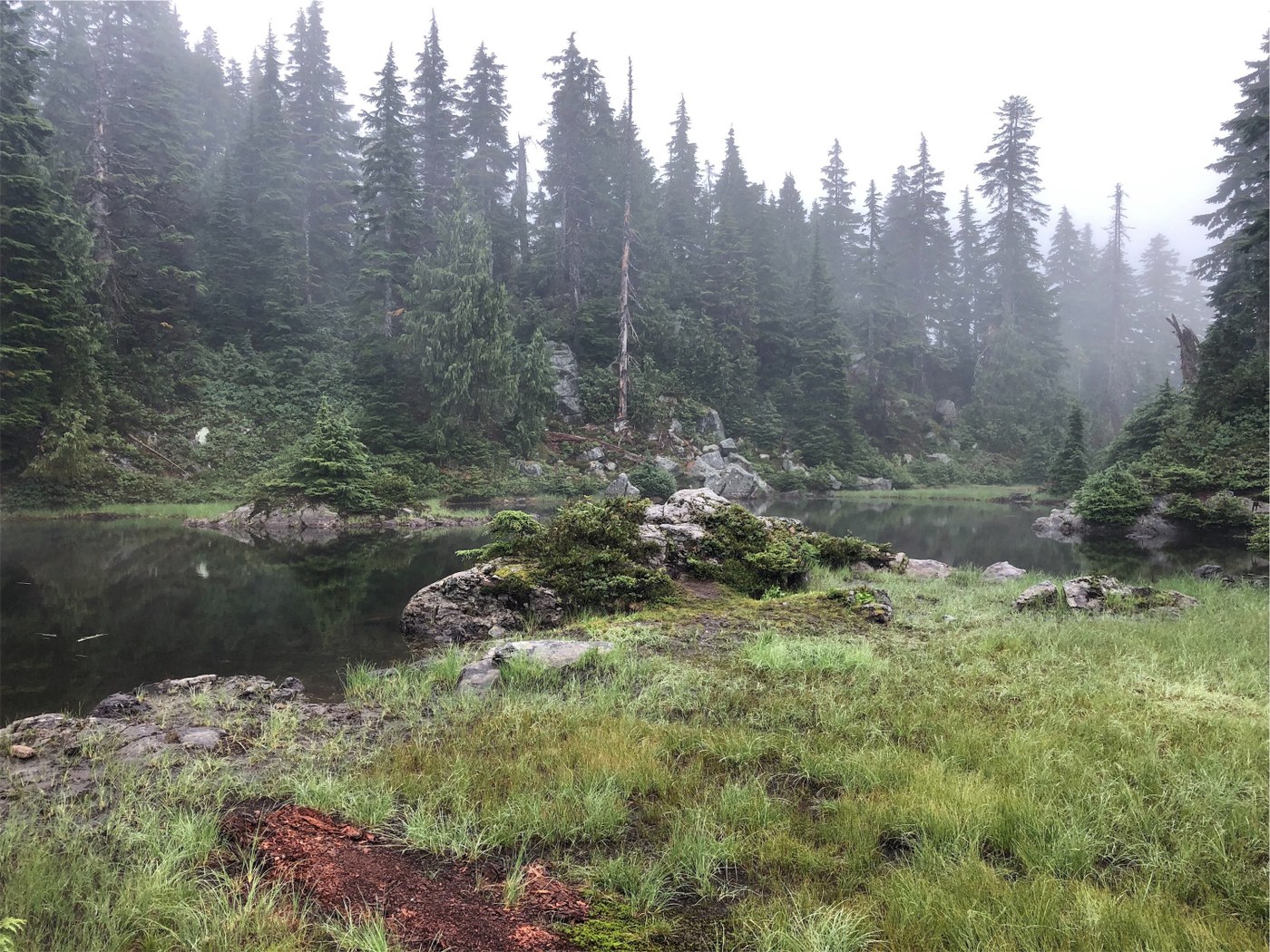 The short summary is that this hike sucks. The trail is both steep and loaded with tree root climbs for at least two thirds of the route from Bear Lake. Snow melt has simply washed away all the soils from this trail leaving just rock and roots. Very similar to Heather Lake trail now but worse. Maybe the combination of poor weather, old age and a tough trail is just making me whiney and crabby but the experience almost overwhelmed the usual joy of being out with good buds in the woods. Enough said. Make your own judgement.