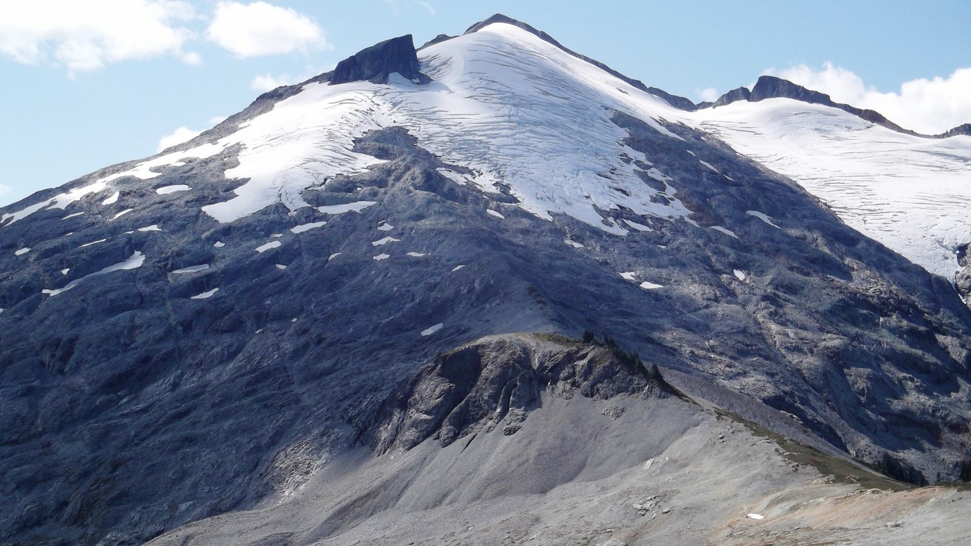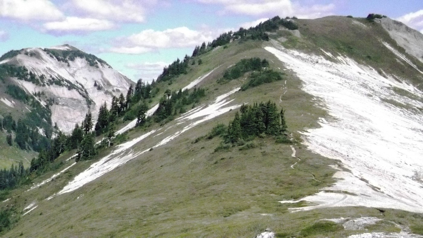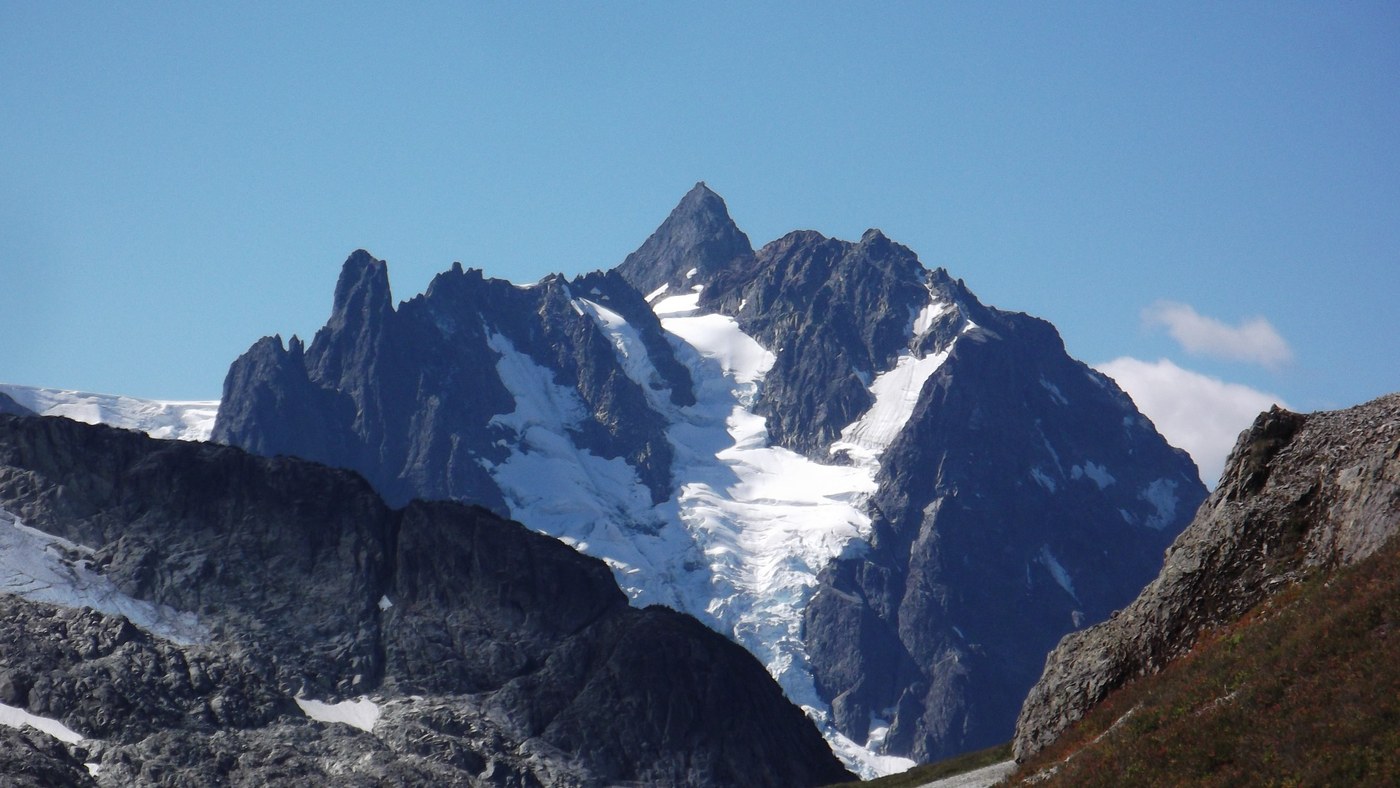Today I hiked the Hannegan Pass Trail and climbed up on the "Arm" of Ruth Mountain. My high point was near the glacier. The arm makes for a spectacular day hike but the gully one must climb (straight up) to reach the climber's trail leading to the arm is terrible. Tree belays up and down, bring gloves if you're determined to reach the arm. From Hannegan Pass take either of the two way trails in a southerly direction over a small hill and either of these will lead you to the gully and the route up to the arm. The gully part was about 125 yards. (Estimate)