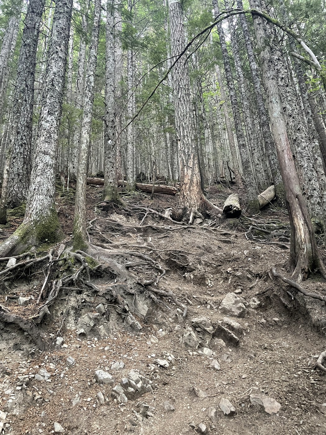 I went down the new trail and it’s much easier. Lots of switchbacks. The trail is very nicely laid out. So much gentler on the knees, but I was already worn with the old trail so it was good that I had trekking poles to help stable myself.