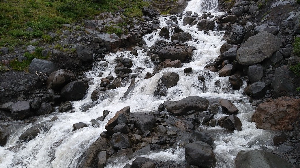 Just about everyone who writes about this trail talks about the infamous stream crossing. The last picture shows what it looked like at the time we came down. It shouldn't surprise you to hear that we saw a group of 4 get to the stream, look at at for a few minutes, and then turn back. On the other hand, my dad is 71 and we got across and back without incident. I definitely want folks to stay safe out there, but I would point out that what makes something safe or unsafe is not just the situation itself, but how you prepare for it in advance and the steps you take to minimize the risk when you get to it.