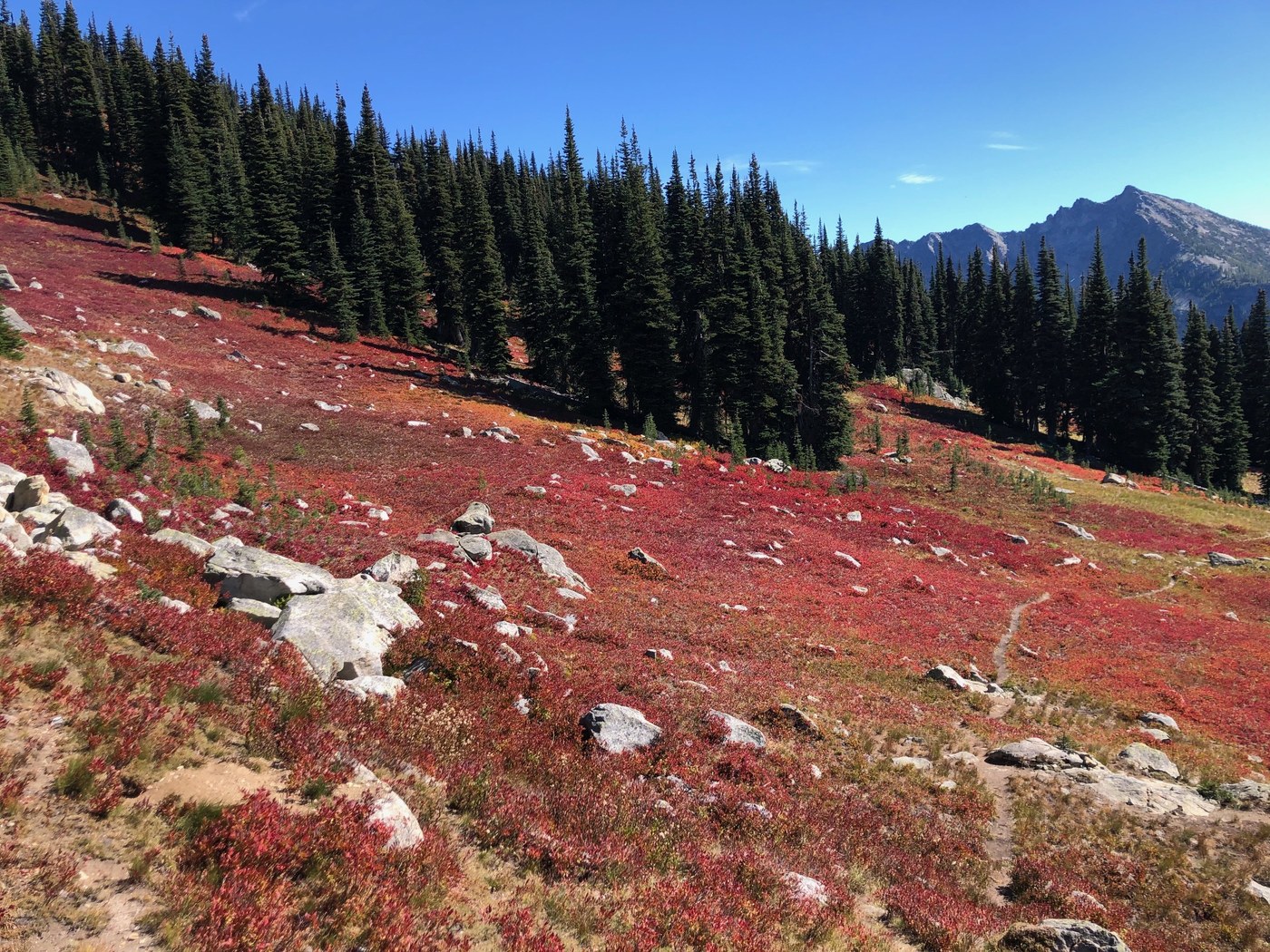 I started at the Bridge Creek parking area, which is right off of Route 20. You have to cross the roadway and continue on the PCT South for a brief stretch. The previous trip report from 6 days ago is very accurate. I hiked this trail on a gorgeous fall day in the Cascades. There is good signage at the intersections. The last sign, which points you to the left-turning Stiletto Peak trail, is low and not immediately visible since it is attached to the away-facing side of the pole, if you are coming from the Bridge Creek parking area. Up to this junction you actually lose about 500 feet in elevation. Once you turn onto the Stiletto Peak trail, it is indeed a challenging climb, via countless switchbacks, about 3300 feet in elevation change up to the remains of an abandoned fire lookout at over 7200 feet. It is also well worth it. Once you get to the meadow and to views, it will leave you amazed. I did not see a single other person on the entire hike, which took me about 8 hours altogether. To pass the time on the way back down, I counted the downed trees impeding progress along this trail. I had to step over, climb over, hike around, or crawl under 82 trees on the way down, for a total of 164 trees for the day! The short PCT section was the only part of the hike without trees stopping you in your tracks. I never found the trail at the very top to be hard to find, as some guidebooks state. Once you reach the meadows, there are cairns to help you along. I am very happy I attempted this hike, in spite of the hard work required.