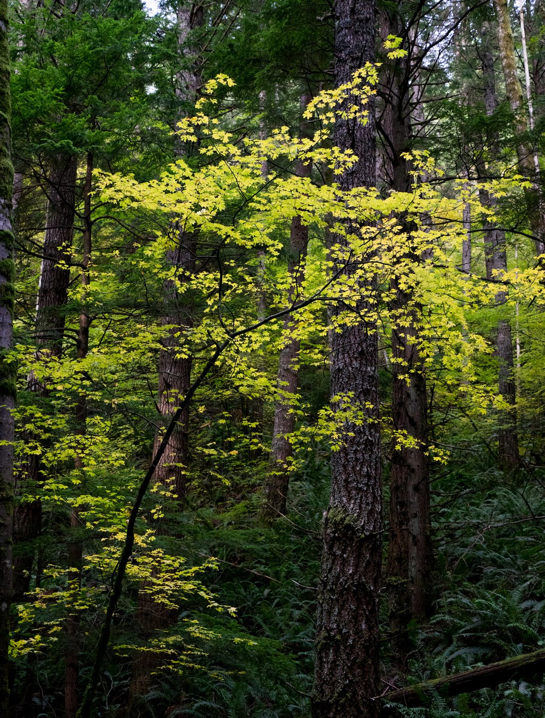 West Tiger RR Grade is a wonderful trail to walk - you don't gain or lose much elevation, so you can can look at the forest some more. The tread is soft, there are lots of vine maples on the hillsides, they are turning lime-green/yellow right now. I didn't see anyone on West Tiger RR Grade the whole time. The only time I did was on the junction with Cable Line.