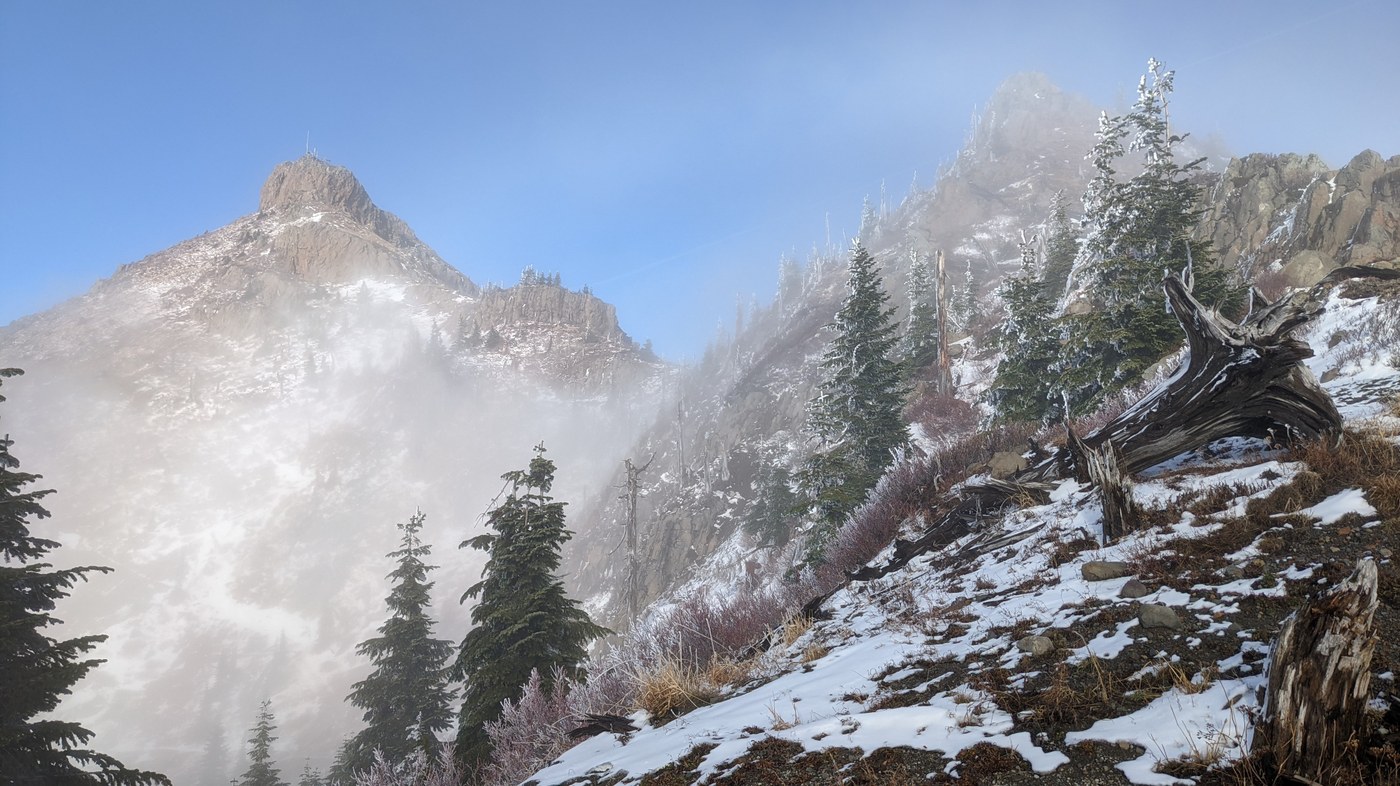 My son and I had planned on spending the night at Ridge Camp on the Coldwater trail #230. However I forgot the poles for our tent, so we decided to do a day hike instead. Snow started intermittently just before Ridge Camp, the camp area itself was completely clear of any snow. We never encountered more than 3" inches of snow the entire day. At 5.5 miles we turned around, this was just short of the junction that connected with the Boundary trail.