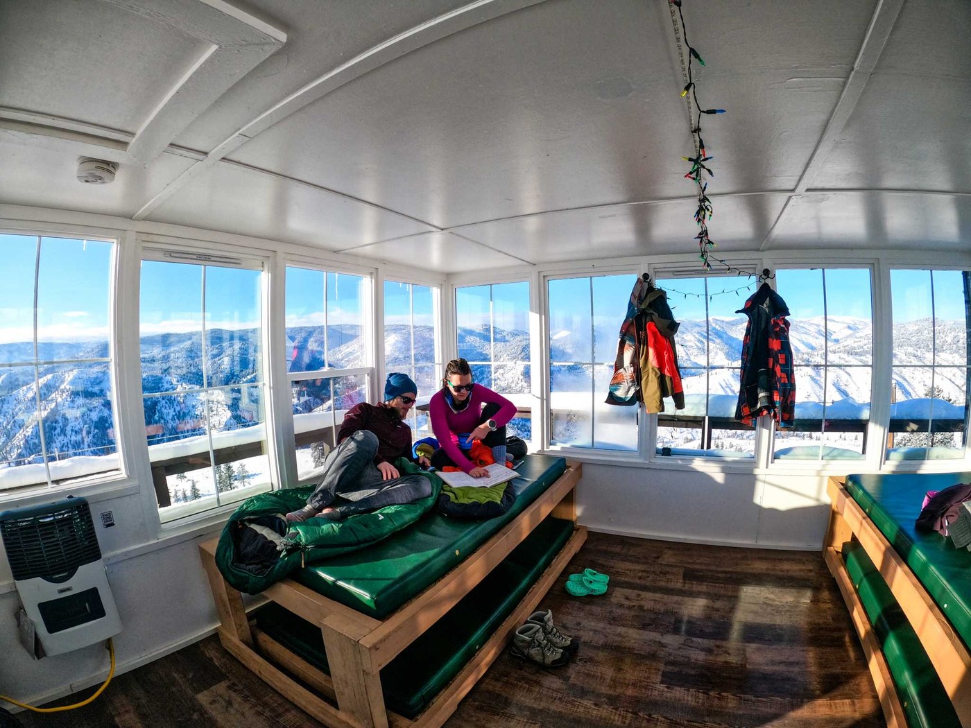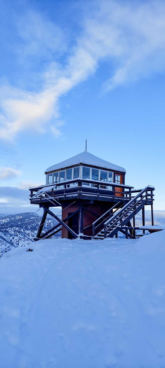We arrived at trailhead in late afternoon 12/30. It was really cold with snow flurries. With couple of inches of snow on the ground and backpacks it took us about 1.5h to get to the lookout. Lookout was frozen inside and starting the heater was a bit hard, but eventually we got it going after multiple attempts. It does provide enough heat to be comfortable inside. Having some power and stove was nice. The views are amazing. We didn't see any wildlife except for birds, but maybe it was too cold for deer ;) Really nice spot to spend a night or two. Happy New Year!