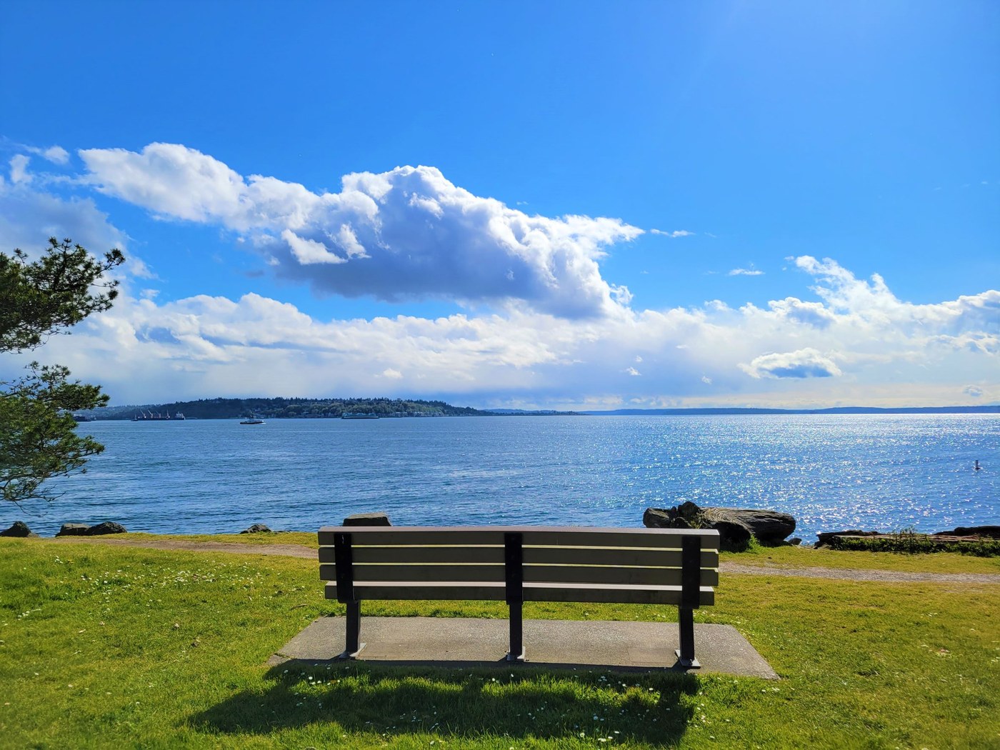 As a semi-urban trail in Seattle, the hiking path has adequate amenities of restrooms, water fountains, and benches for everyone within the Centennial Park region. The trails also connect to other nearby trail systems at Myrtle Edwards Park and other piers at the waterfront as the trail is quite lengthy for miles - following along the coast. The trails are separated between the walking path and biking path, although people were mostly walking around the path with not many bikers seen at the trail system. The trail and park area is very wide open with grassy areas unobstructed by trees, meaning that the trails are bright and sunny throughout the daytime. Looking across the water from the trail provides many good views into the distant downtown Alki Beach and the abundant residential areas since the trails are a part of the city. In the middle of spring, the skies are mostly clear with consistent sunny and warm weather throughout the day.