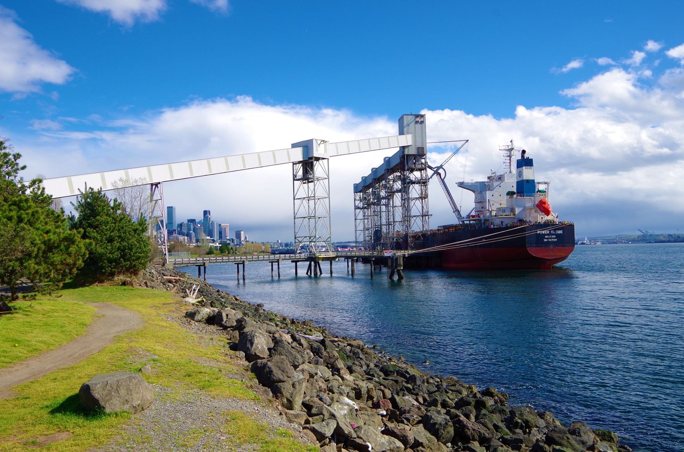 Elliott Bay Trail is a paved walking trail that runs along the coastal region of the bay waters, being easily accessible for jogging and biking in the downtown Seattle region. The trailhead is located near a parking lot at the entrance to the tall grain terminal, with ships passing by throughout the day. The bay trails offer a simple walk through wide open grass areas, which are particularly enjoyable during the bright sunny weather. The coastal area where the water meets the trails are very rocky and mostly empty, where various birds seem to sit around. The well-maintained walking paths are ideal for causal walks or bringing pets along, with a good amount of people seen walking around the trails during the daytime. At a middle section of the trail is a pier along the bay's coast, however it is currently closed to all visitors due to signs that vaguely warn of a "safety hazard."