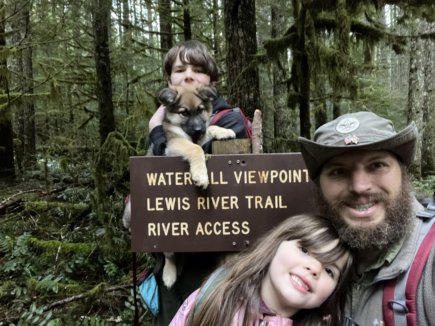 My oldest, 16yrs, my daughter, 6yrs, and our new puppy, Scout, a German Shepherd / Husky mix, at 3 ½ months old all did well.